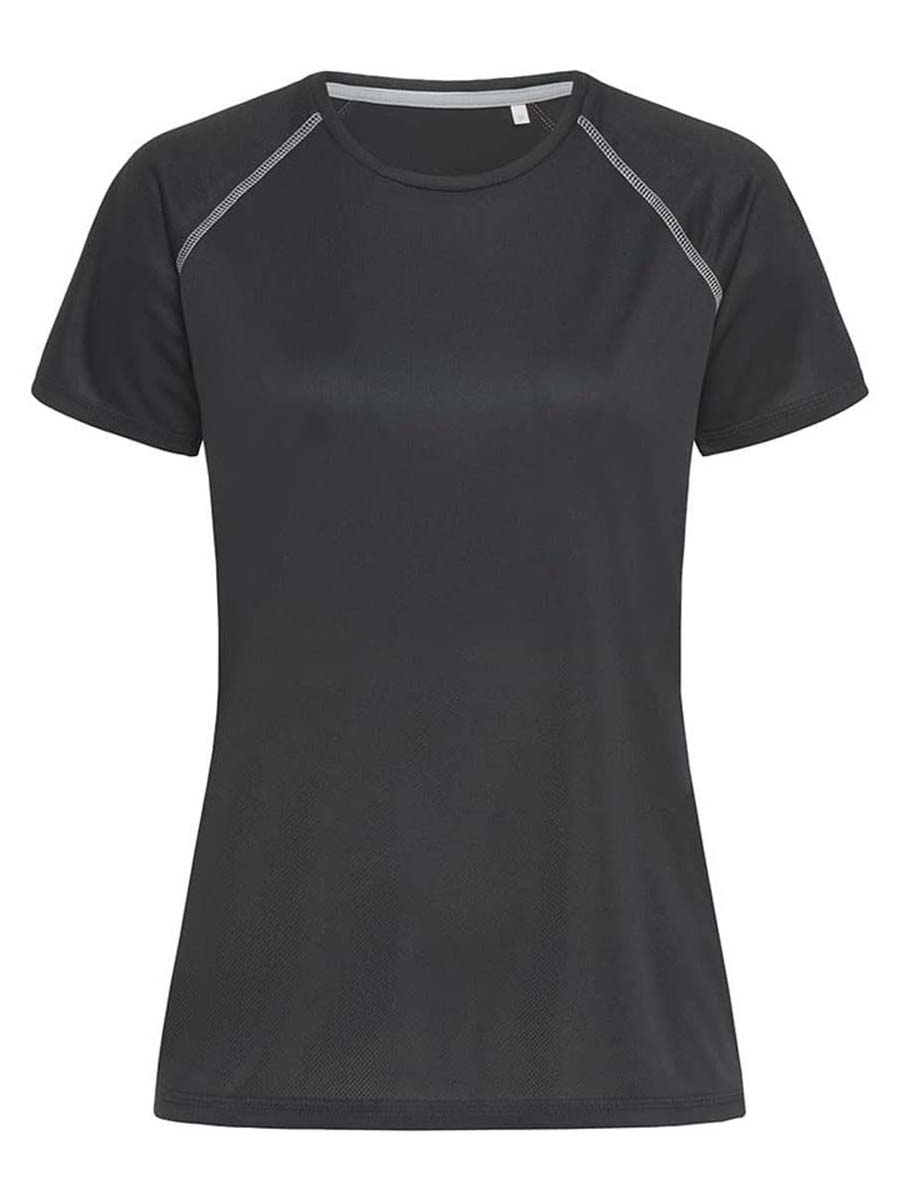Maglietta sportiva da donna dal taglio comodo con cuciture raglan di colore contrastante, in tessuto funzionale mesh traspirante ad asciugatura rapida.
